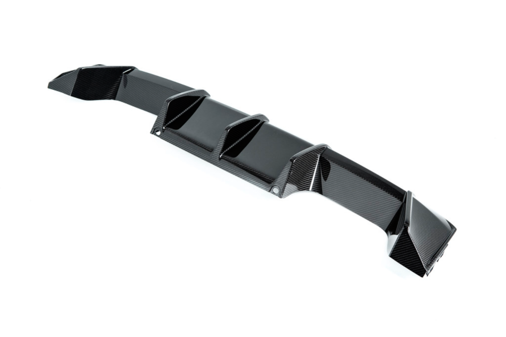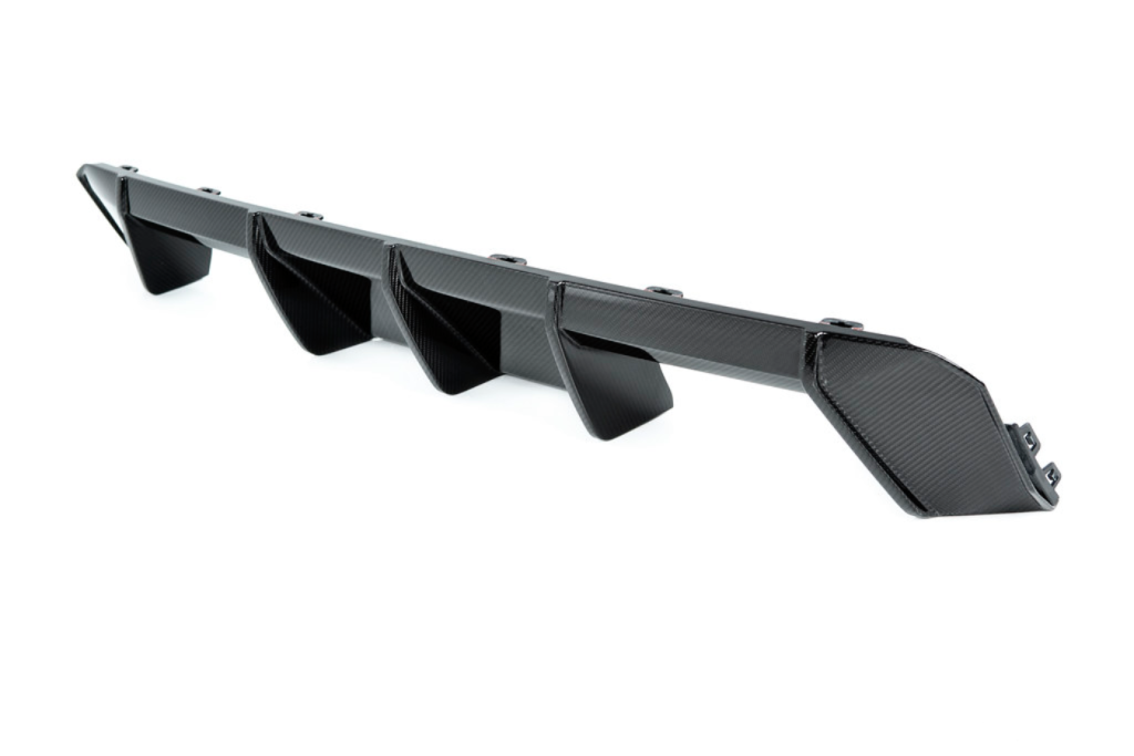 Tích hợp các khe khuếch tán gió (diffuser fins) giúp dẫn luồng khí hiệu quả, tăng lực ép xuống mặt đường (downforce).