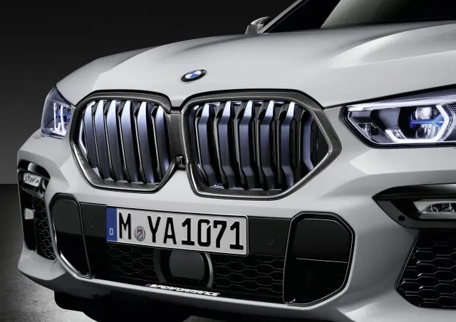Thiết kế kidney grille lớn đặc trưng của X6 với viền carbon thể thao.