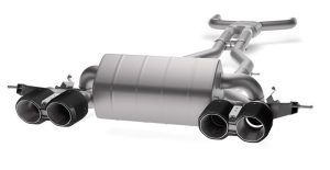 Ống xả Akrapovič biến đổi âm khi: ở vòng tua thấp, xe có tiếng xả êm, dễ chịu; khi tăng ga, throttle, âm thanh chuyển sang “deep & sporty” — rất hợp với xe M / coupe / hiệu năng cao.