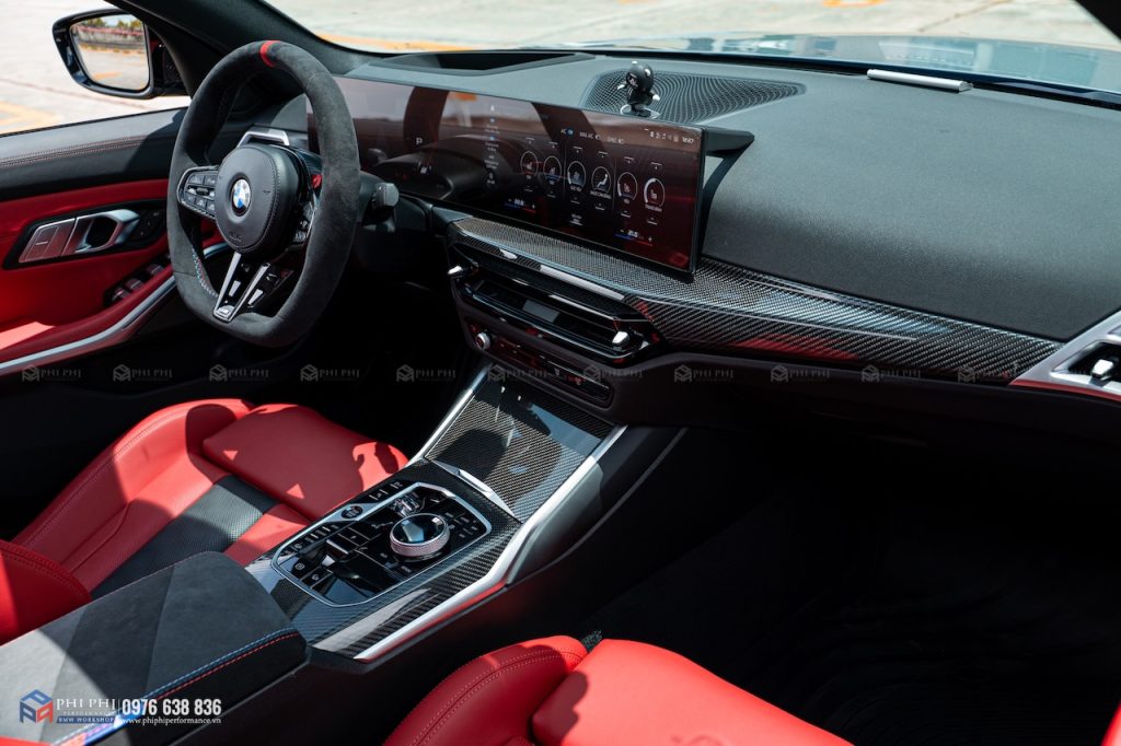 Trim nội thất carbon chính hãng BMW dành cho G80 M3 có nhiều điểm đặc biệt, thể hiện rõ chất thể thao đặc trưng của dòng xe hiệu năng cao M.